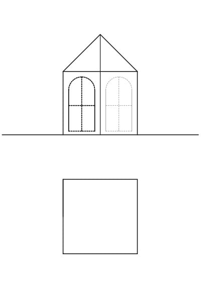 四角形〜十角形の平面の全ての壁は、この一種類をつなぎます。お好きなように、窓や扉を設けられるよう、破線と折り線が入っています。